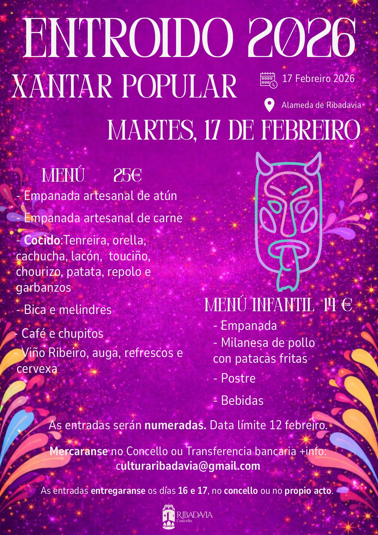 Desfiles, conciertos, fiestas populares y propuestas para todas las edades convertirán a Ribadavia en un punto de encuentro imprescindible durante estas fechas. Una celebración en la que tradición y diversión se unen para hacer del carnaval una experiencia inolvidable.
